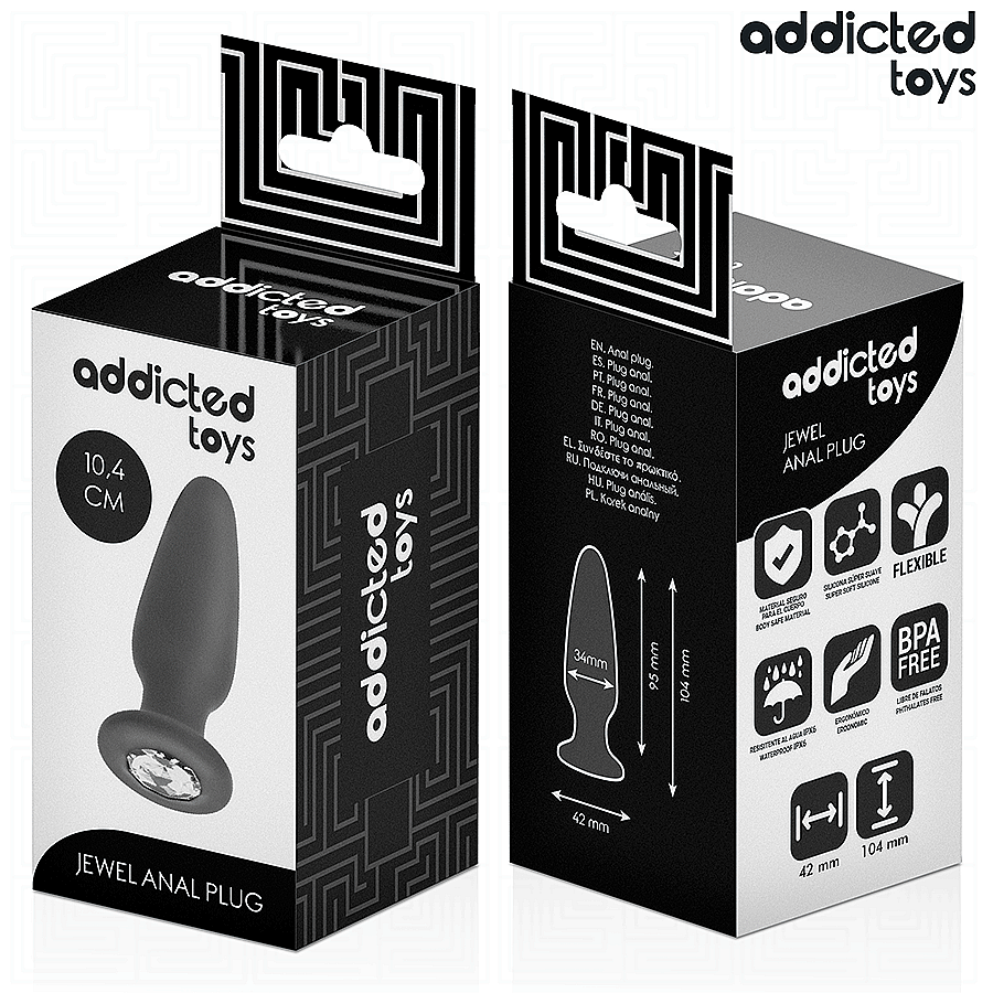 Addicted Toys Anal Plug With Jewel Silicone Size M vás hladce uvede do světa anální hry a zanechá po sobě jiskřivý dojem. Je kompaktní a rafinovaný, takže se krásně nosí i po delší dobu. Tělo z lékařského silikonu je sametově hebké na dotek a flexibilní, aby se přizpůsobilo vašemu tempu. Ergonomický tvar podporuje snadné zasouvání, zatímco rozšířená základna se šperkem nejen láká očima, ale zároveň drží vše bezpečně na místě. Velikost M je ideální pro začátečníky – poskytuje plnost bez zbytečného přepínání, a přitom dovolí si hrát déle a pohodlněji. Hladký povrch klouže s kapkou vodního lubrikantu snově a bez tření. Každý milimetr je promyšlený – od kompaktní výšky přes příjemnou šířku až po zasunovatelnou délku, která nabízí kontrolu i jemnou intenzitu.