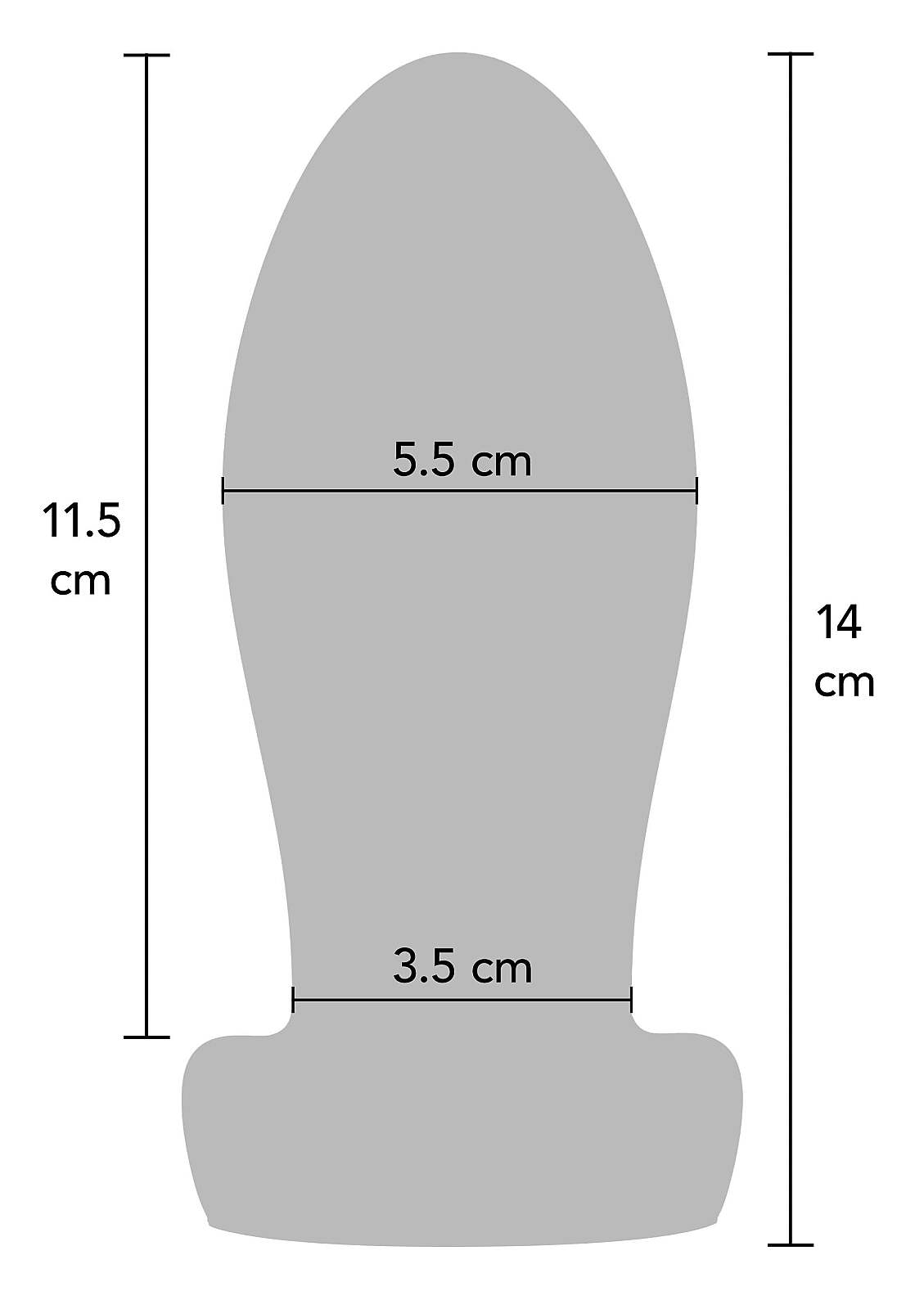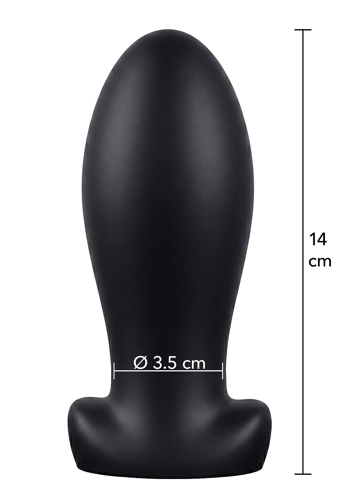 Pevný a těžký anální kolík z 100% tekutého silikonu s širokou základnou. Velikost M, 14 cm celkově, 11,5 cm vkládací délka. Přirozená váha zvyšuje tlak a pomáhá s tréninkem na větší hračky. Další informace
