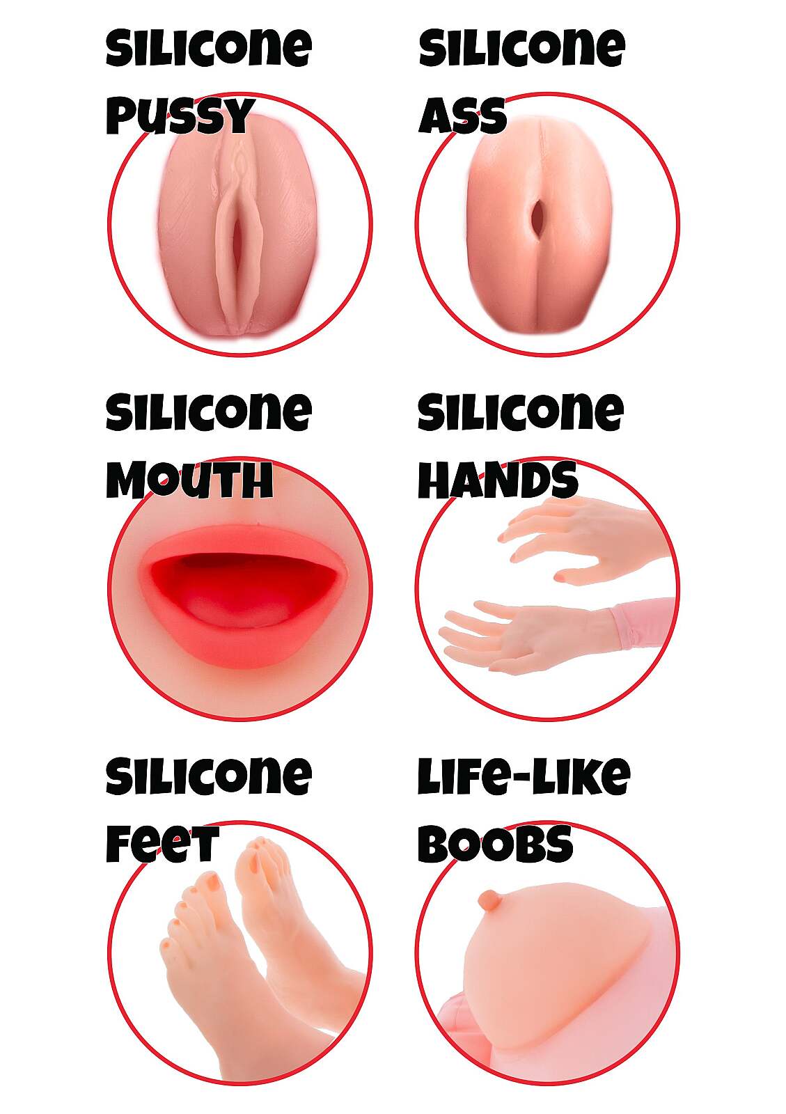 Životní nafukovací panna s pravými vlasy, měkkou pokožkou a třemi vstupy (ústa, silikonová vagína, anální). 160 cm, 2,94 kg, PVC a silikon. Nejlépe s lubrikantem na vodní bázi pro maximálně realistický pocit. Další informace