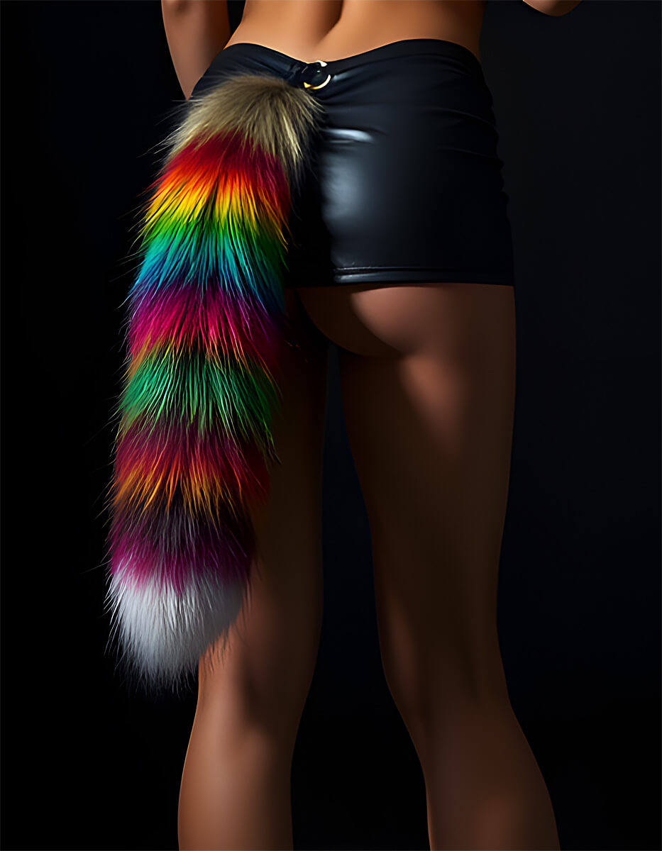 Kočičí ouška jsou vyřešená, zrovna mám s sebou sluchátka, která mají nahoře svítící uši, ale co ocas? O polední pauze jsem zaskočila do obchodu, kde jsem doufala, že ho seženu, a uspěla jsem. Měli duhový Fluffy Tail, který se mi hodí ke sluchátkům, jelikož na nich ta ouška mění duhově barvy. Nijak podrobně jsem ho neprohlížela, prostě jsem ho čapla, zaplatila a zmizela.