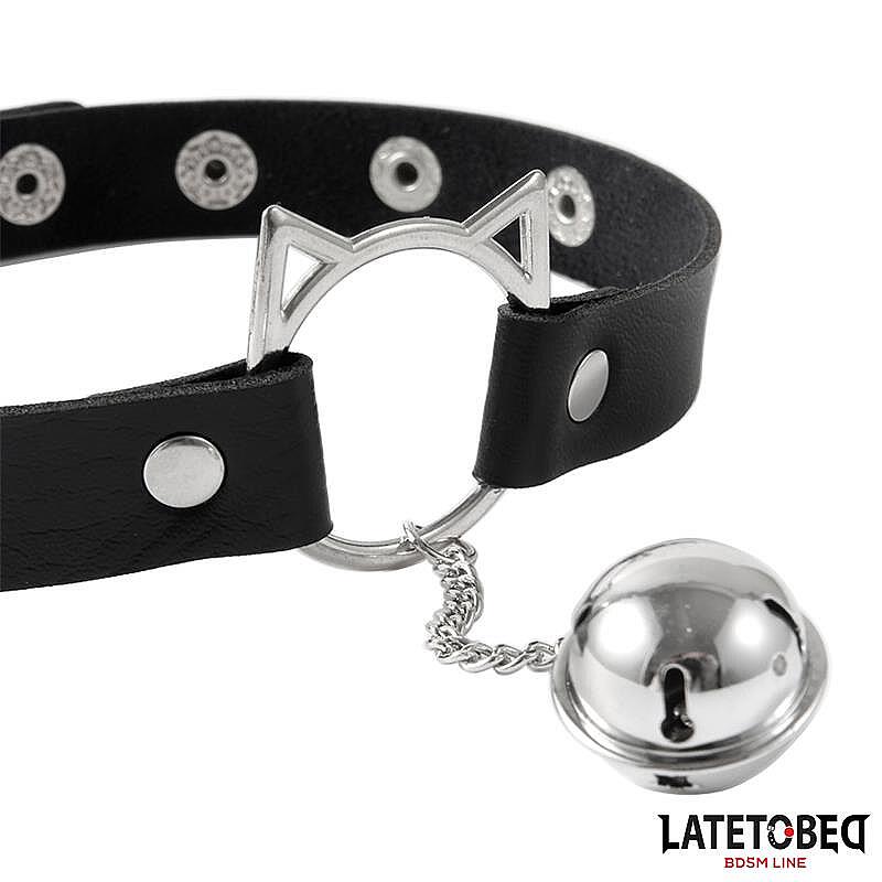 Nastavitelný choker z kovu a PU s motivem kočičích oušek a rolničkou. Svůdný BDSM doplněk pro hravé i intenzivní erotické chvíle. Další informace
