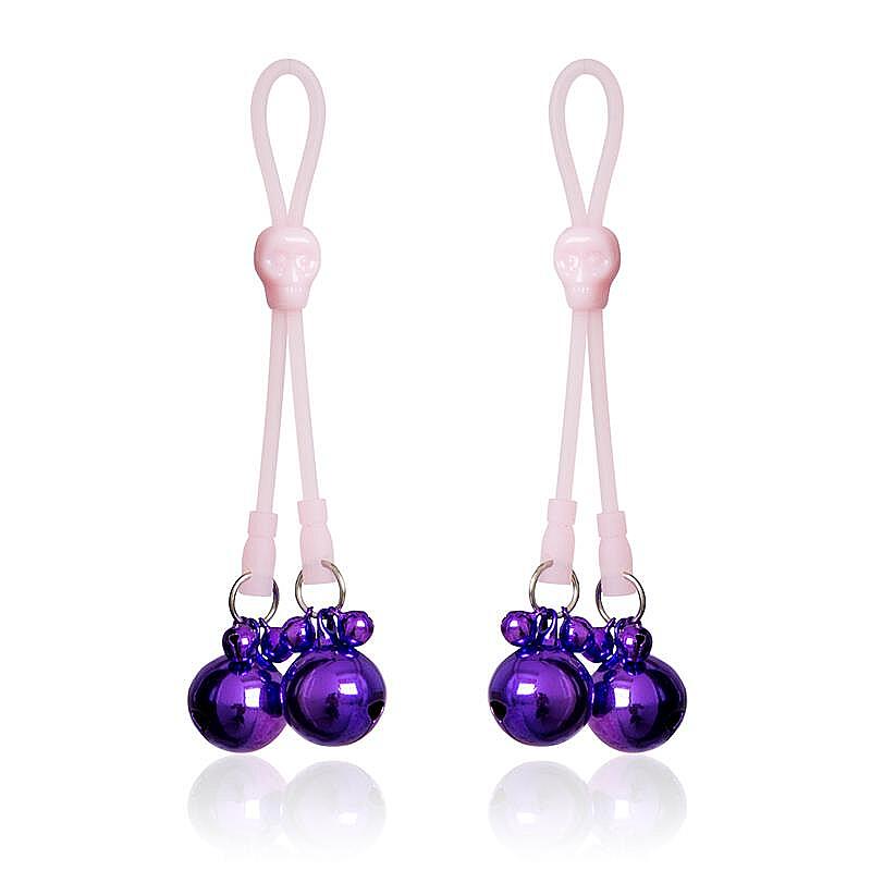 Nastavitelné růžovo-fialové svorky na bradavky s motivem lebek a malými rolničkami přinášejí hravou i dráždivou stimulaci. Lehké provedení a svůdný design zpestří předehru i BDSM hrátky. Další informace