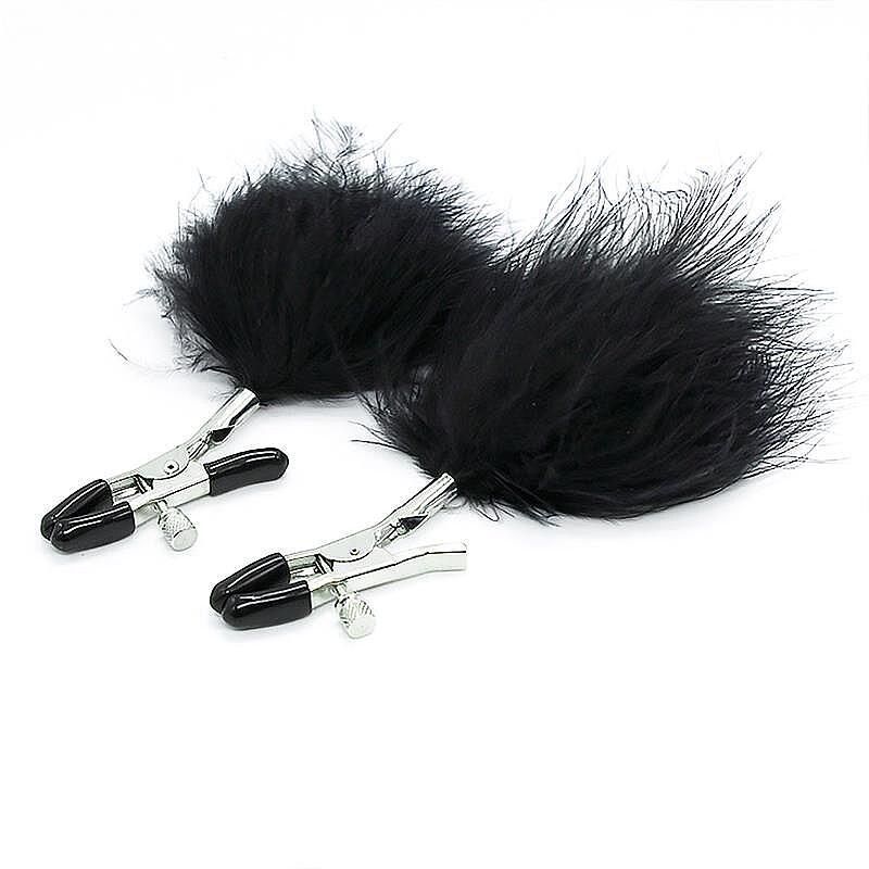 Plně nastavitelné svorky na bradavky s ochrannými krytkami a dlouhým černým peřím. Nabízí dráždivou stimulaci, pohodlnější nošení a výrazný BDSM vzhled. Další informace