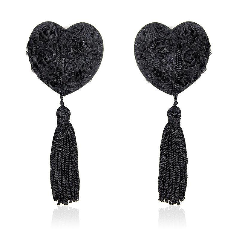 Samolepicí černé krytky bradavek ve tvaru srdce s krajkou a motivem růží. Erotický doplněk pro svůdný styling, intimní chvíle i odvážné outfity. Další informace