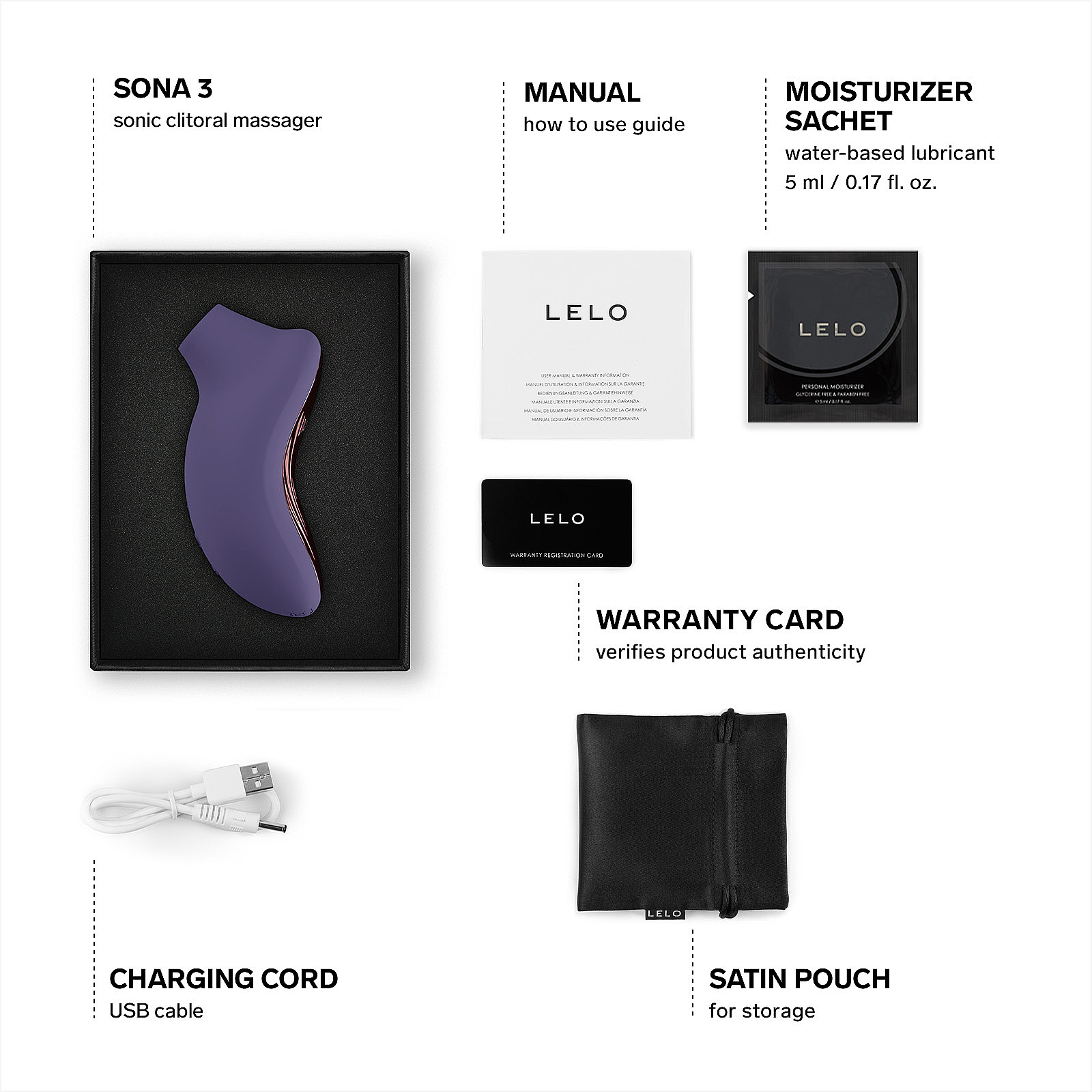 Sonický stimulátor klitorisu s technologií SenSonic a SmoothRise, až 12 režimy (2 v aplikaci), ultra jemným silikonem, tichým chodem a baterií až na 2 hodiny. Ovládání 3 tlačítky a přes aplikaci LELO. Další informace
