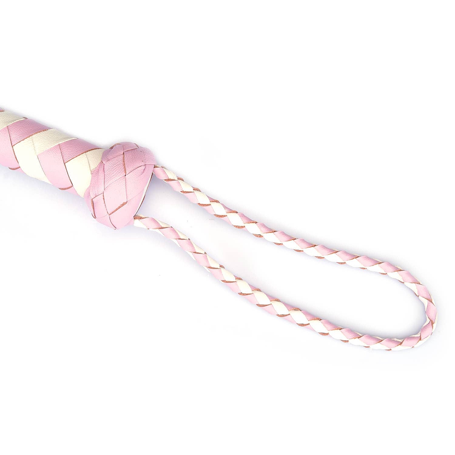 Luxusní kožené důtky z jehněčí kůže v bílo‑růžovém provedení s růžově zlatými detaily. Pletená rukojeť pro jistý úchop, délka 63 cm. Součást kolekce Fairy od Liebe Seele. Další informace