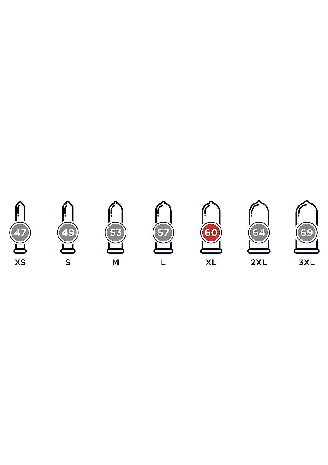 Ultratenké kondomy XL s nominální šířkou 60 mm a tloušťkou 0,05 mm z přírodního latexu. Transparentní, hladké, lubrikované a s rezervoárem. Veganské. Pro obvod penisu 13,5–14,5 cm. Další informace
