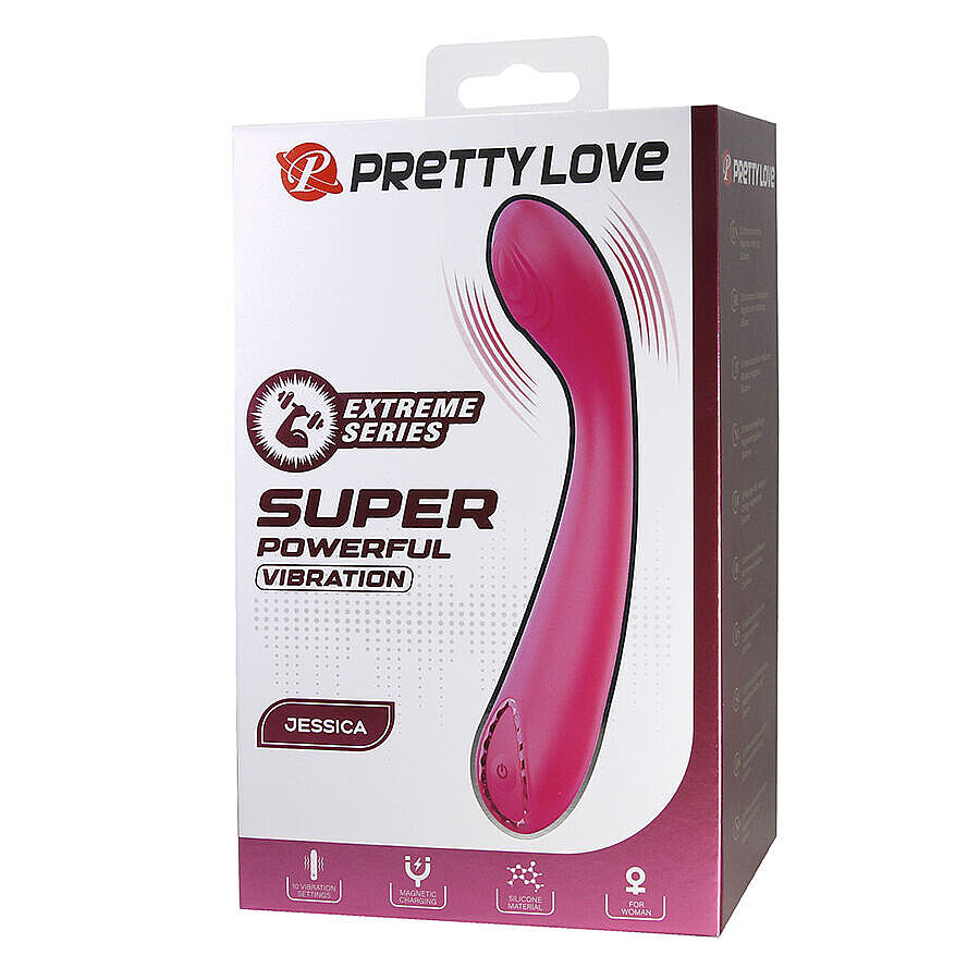 Pretty Love Jessica od značky Pretty Love je vibrátor z řady Extreme Series, který zaujme svou vytříbenou kvalitou, ergonomickým tvarem a podmanivě silnou stimulací. Je navržen tak, aby přirozeně přiléhal k tělu a přenesl každý pulz ještě hlouběji, jemně i dráždivě zároveň. Nabízí 10 vibračních režimů, díky nimž si můžete vychutnat vše od decentního chvění až po výrazné pulzování, které probudí smysly naplno. Povrch z tělu bezpečného silikonu je hebký, luxusní na dotek a příjemný při každém použití. Velkou předností je také velmi tichý chod, který dopřává více soukromí a diskrétnosti. O pohodlné používání se stará i USB dobíjení s magnetickým kabelem, takže je vibrátor vždy připraven na další hravé dobrodružství.