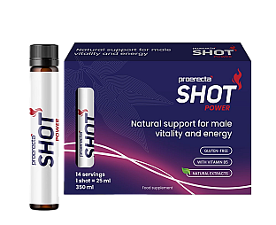 Proerecta SHOT je tekutý nápoj na podporu erekce. Energy Drink pro penis. Tekutý přípravek se vstřebává až 2x rychleji než tobolky. Rychlý nástup do 30 minut. Bylinné složení podporuje spokojený sex. Obsah 1 shot (25ml). Český výrobek. Další informace