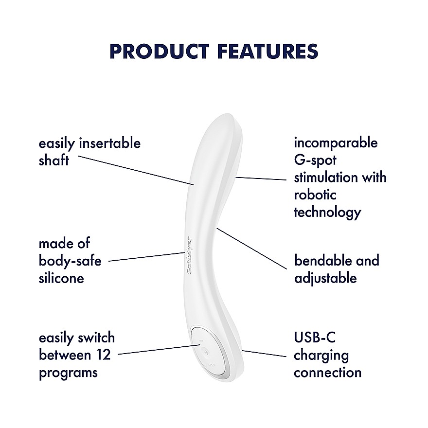 Satisfyer G-Spot Wave 2 (Ice Blue) svádí G‑bod realistickými prstovými spirálami díky chytré Robotic Technology, která přesně napodobuje dotek prstu a hladce míří do vašich nejžhavějších míst. Jeho ultra jemný, tělu bezpečný silikon se pružně přizpůsobí vašim křivkám a klouže po pokožce jako hedvábí – něžně, a přitom důrazně. Z 12 programů Robotic Wave si vyberete přesně tu vlnu, která vás naladí od pomalého škádlení až po odvážnou intenzitu. Tichý režim udrží tajemství jen mezi vámi, abyste si mohli vychutnat intimní chvilky kdekoli. Díky vodotěsnosti IPX7 se s ním ponoříte do vany i sprchy a každé pohlazení získá nový rozměr. Intuitivní ovládání na těle hračky vás nechá zůstat v momentu, zatímco USB‑C nabíjení připraví hračku rychle na další kolo. Po akci jej snadno omyjete vodou s jemným mýdlem a čističem na erotické pomůcky – a je připraven znovu vás rozvlnit.
