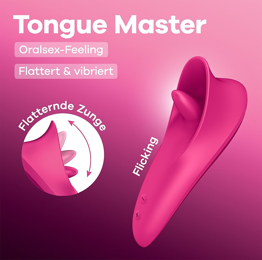 Satisfyer Tongue Master (Pink) s pružným silikonovým jazýčkem věrně napodobí orální dráždění a rozvlní klitoris i pysky přesně podle vaší nálady. Superjemný, tělu přátelský silikon přenáší silné vibrace intenzivně a sametově. 9 režimů lízání a 9 vibračních programů nabídne od něžného šimrání po elektrizující extázi. Dvě intuitivní tlačítka zajistí bleskové přepínání a citlivé ladění tempa. Prodloužené ergonomické držadlo dá vaší ruce přesnost a kontrolu, abyste vždy zasáhli ta nejcitlivější místa. Tichý režim udrží vaše tajemství v bezpečí, i když si dopřejete pořádnou jízdu. Vodotěsné provedení IPX7 láká do sprchy i do vany a snadno se čistí během chvilky. Nabíjení přes USB‑C a lithiová baterie dodají energii rychle, kdykoli vás přepadne chuť.