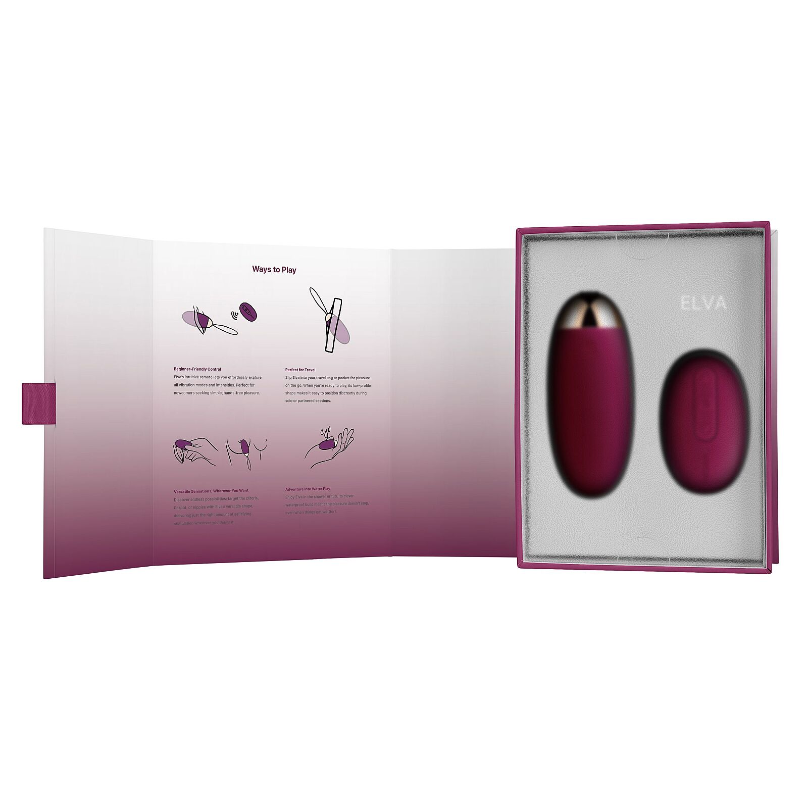 Chytré vibrační vajíčko SVAKOM Elva s dálkovým ovládáním. Rozměry vajíčka 8 x 3,2 cm. 25 + 1 vibračních režimů (1 chytrý režim + 5 programů s 5 intenzitami). Nabíjecí Po-Li akumulátor s výdrží až 3 hodiny. Dlouhým dosahem. Silikon. 100% vodotěsný. Další informace