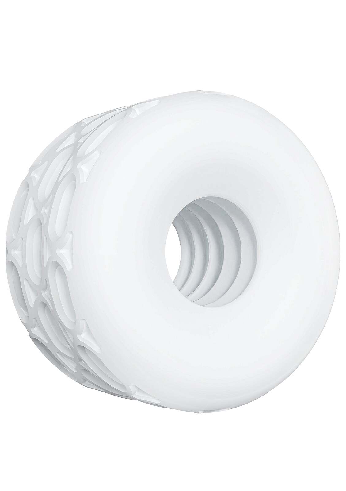 Super pružný 4v1 kroužek z TPE: C-ring, ball stretcher, stopper a stroker. Ergonomický, oboustranný design, bílá barva. Průměr 2,5/6 cm, hmotnost 90 g. Pro výdrž, kontrolu hloubky a intenzivní stimulaci. Další informace